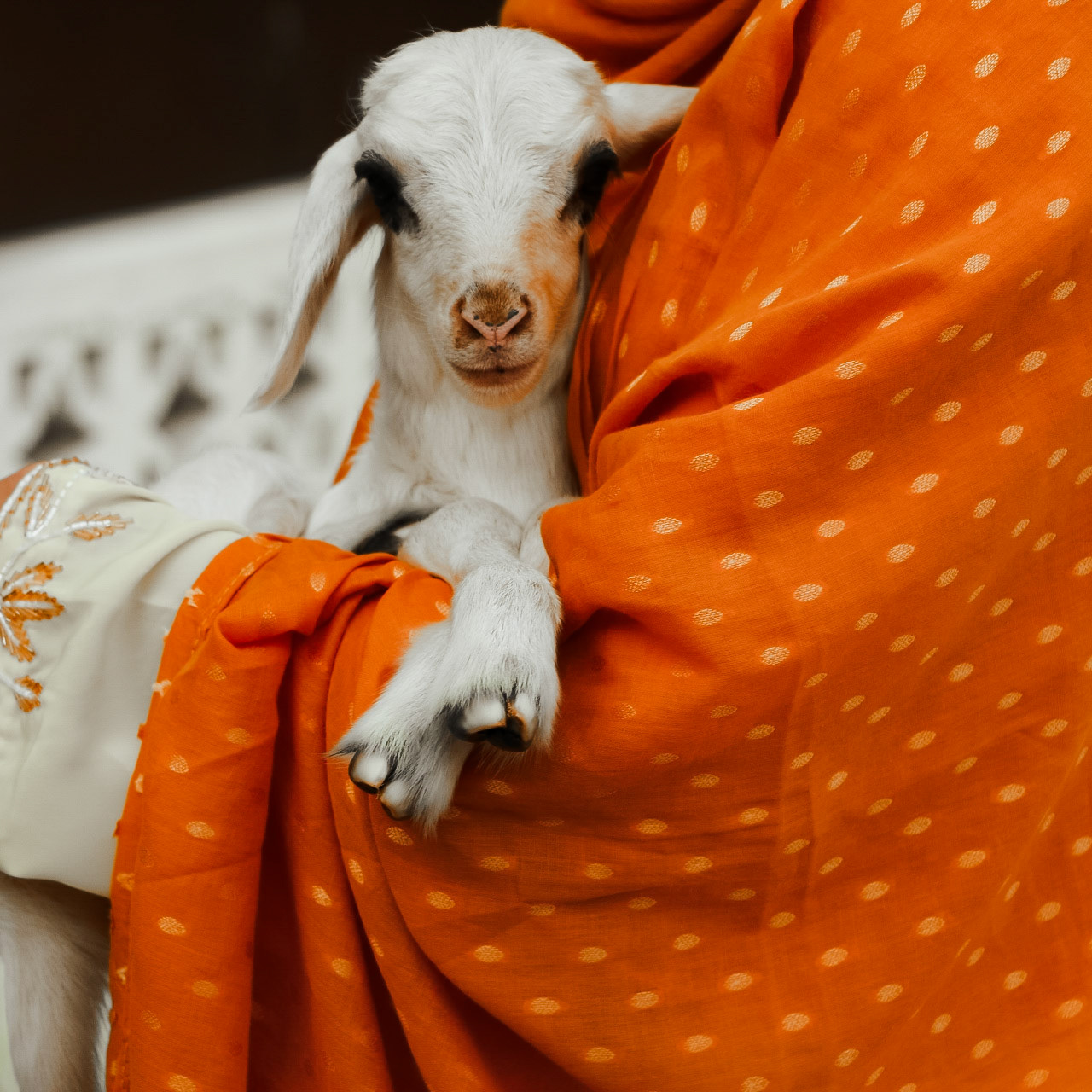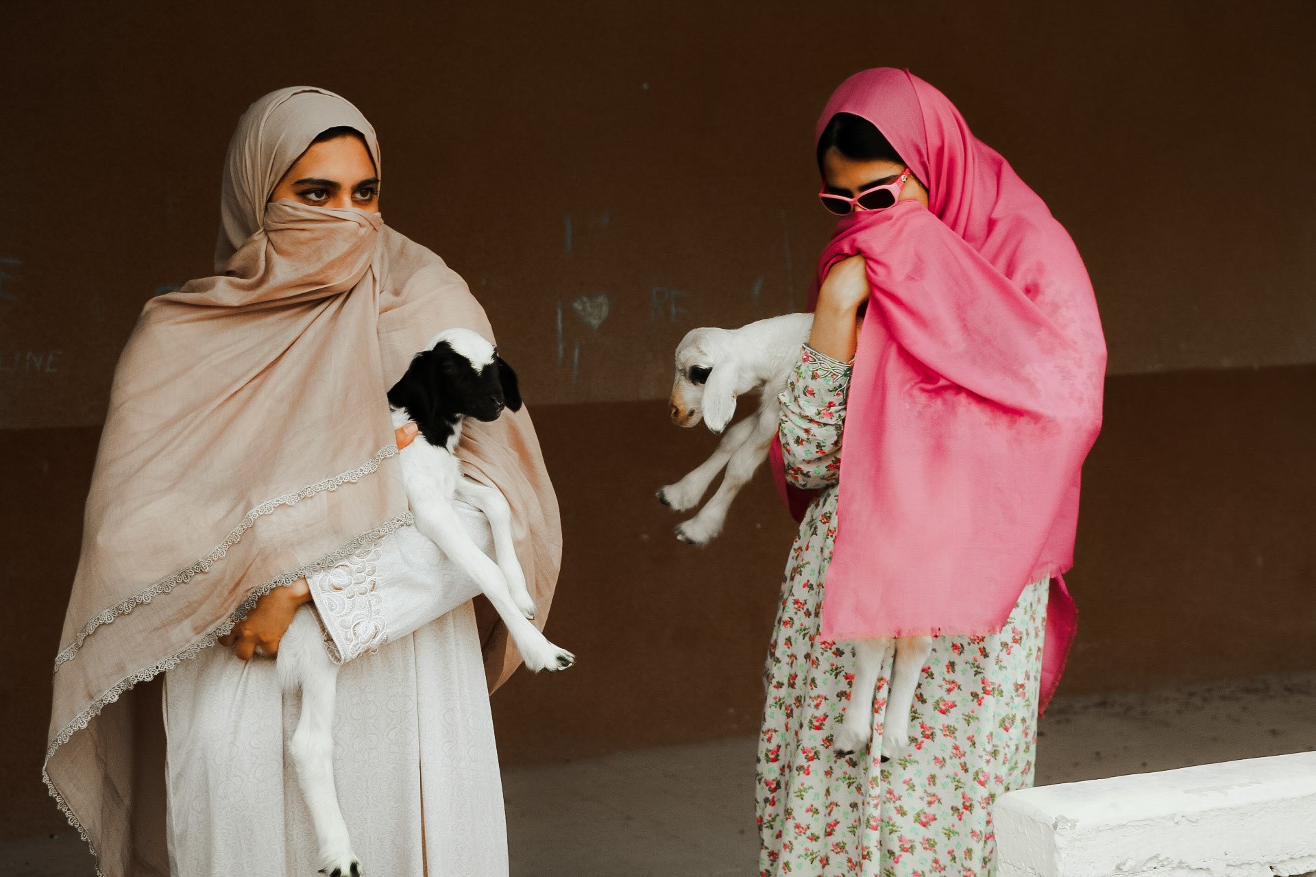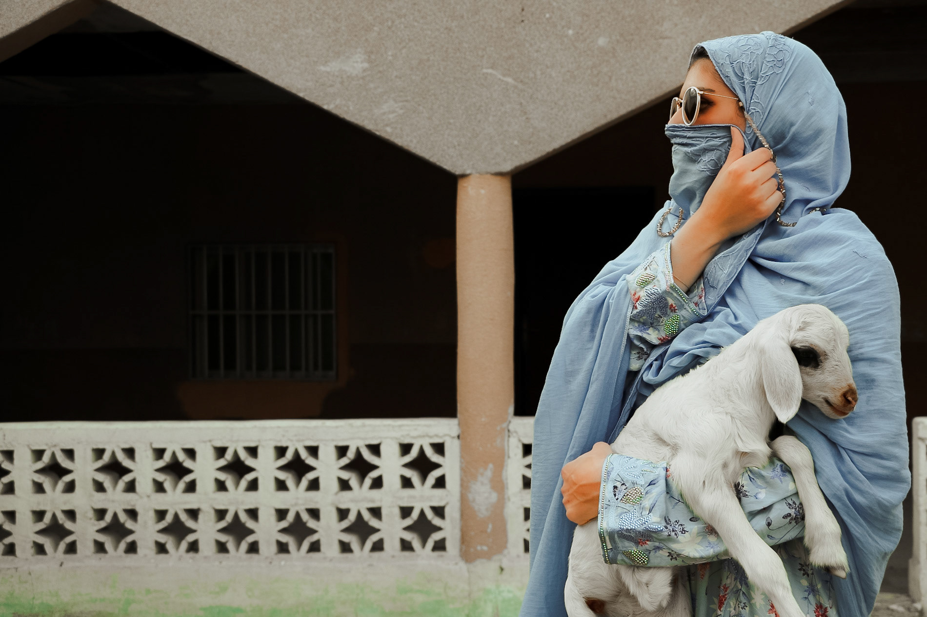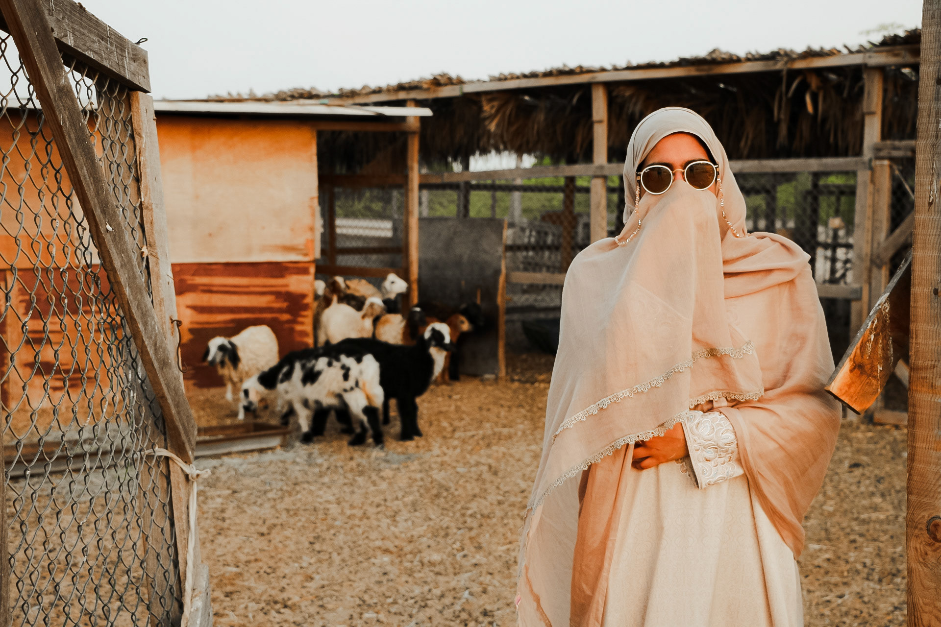 In this series, fairies wander through farm and field, cradling lambs as emblems of purity and renewal. Draped in radiant fabrics, they move between palm groves, weathered homes, and modular walls, weaving a dialogue between architecture and life. In their presence, the ordinary world of farm life transforms into myth: a place where fleece is white as snow, and every thread of fabric, hoofbeat, and shadow whispers of guardianship, tenderness, and enduring beauty. The old house, with its softened scars, stands as a vessel of memory, while the fairies breathe enchantment into the ordinary transforming farm life into a myth.