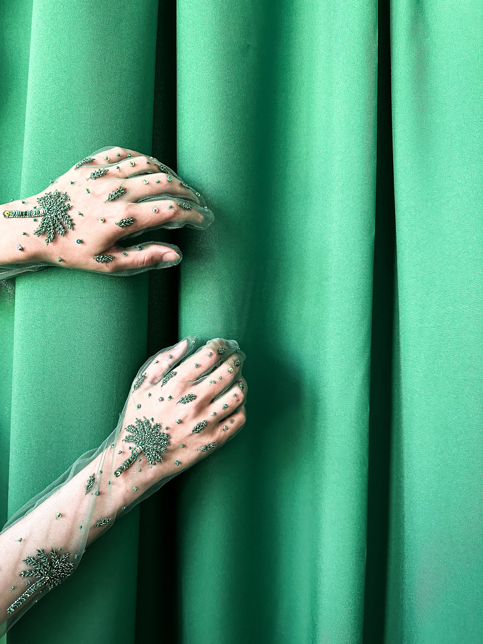 As part of this series, I designed hand-embroidered gloves as a poetic tribute to nature and tradition. Each piece carries the memory of a plant deeply rooted in cultural and regional identity stitched into form as a second skin.