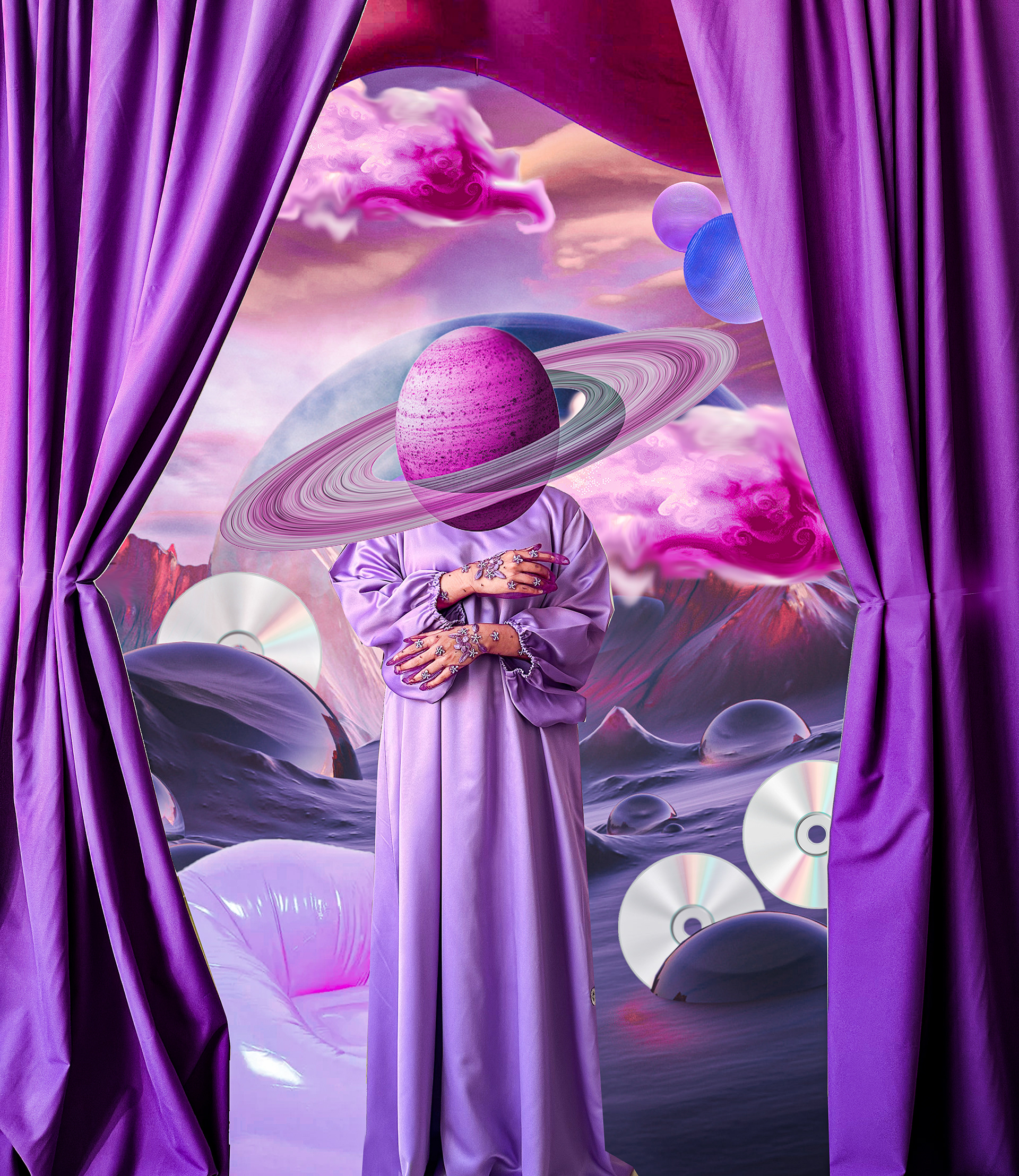 Vibrant and otherworldly, Amethyst City glows in hues of violet and rose. The queen’s head becomes a planet with rings an astral ruler of a dreamy cosmos filled with clouds, spheres, and shimmering reflections. This is a city of fantasy and wonder, a playground where imagination reigns.